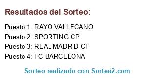 Lista de participantes: SPORTING CP, REAL MADRID CF, RAYO VALLECANO, FC BARCELONA.