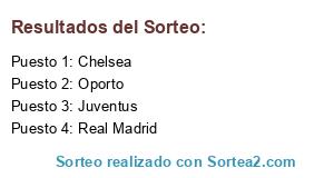 Lista de participantes: Juventus, Real Madrid, Chelsea, Oporto.
