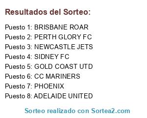 Lista de participantes: ADELAIDE UNITED, BRISBANE ROAR, CC MARINERS, GOLD COAST UTD, NEWCASTLE JETS, PERTH GLORY FC, PHOENIX, SIDNEY FC, N. QLD FURY FC.
