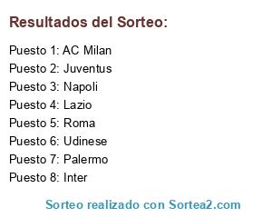 Lista de participantes: AC Milan, Inter, Juventus, Lazio, Napoli, Palermo, Roma, Udinese.