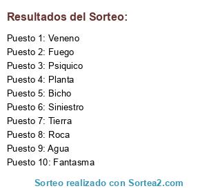 Lista de participantes: Psiquico, Fantasma, Fuego , Siniestro, Planta, Roca, Agua, Veneno, Bicho, Tierra.