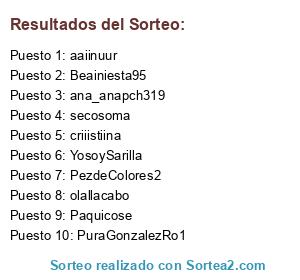 Lista de participantes: cristinarodrigue , miraenlaalacena , coloresverdaderos , rosapaula2 , mlourdesferbuson , teresillat , beyu13 , maitesorito , maryland121 , jeniyani2 , happypinkii , redondo.lourdes , pairetvalls , nenayaaron , arnaizdelgado.sergio , dosorillas , nifares78 , serafo1969 , euroba45 , svsjsandy , lunan_93 , si_no_loveo_no_lopruebo , danielazavoianuion , puritagr , mypersonallaundry , jesus18martingonzalez , moncheta1982 , cosplaydiana , rmartin15 , maaikaa33 , elzetafotos , sorrozvalentina , fatimabilbaos , glogado , carmenbello5 , que_hay_por_aqui , rubentriana29 , el.vira421 , 2018ninki , watermelon_413 , manololechugo , cucheriavi , navy4400 , ty_davalos , coco.lilo , temerizo , aicraganidemnoicanracne , filenglish0 , jlmartin8 , raquelagom , arqcvd , pachijaneth , domingoinma , villa_loly , caroloma45 , raquicm85 , rafaelcheca , maytemay , fgarcia1982 , jarabogarcia , pat_marttin , tocadordelahorro , do_ble_j , momentomolon , jlaura_de_cbs , luperper2 , vanesa7629 , yoly.gut , minnie.mp , eugemirga , susanaferrellamas , sandra_g_a_ , Kruppyer6 , lery.lopez , anadeblogs , toletum69 , marianf.21 , maduixafamolenca , citro212 , miscositas18 , lour1010 , dolorido , vanesagarciasalas , maria_martest , fuchiesteban , pikigomez33 , marylowflowflow , font3cha , gelssales1980 , lalimalita , mariacarol1981 , paticolor1983 , marestrella83 , alcorazon19 , peperutto , planvive , chucheriavi.