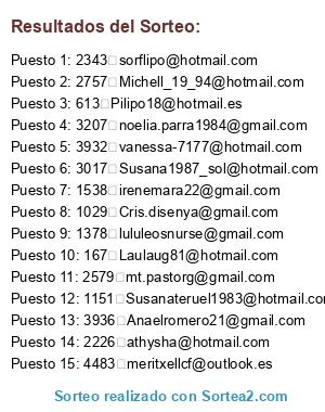 Lista de participantes: @Helenitapaspe, @Bischoff.natalia, @esegurasanz, @rociogp57, @elena.insomnia, @ariedec, @Irene_chelsea, @Ingatorrent, @Monicainfante, 10 paola.paobgpgmail.com, @Olatz_udaondo, @gilfer79, @miriampinapardos, @ainhoa5mh, @tatoos5, @mrevillasierra, @belindarl671997, @sapeke13, @brj_p86, @La_sara10, @gemma_marta_ayala, @Irsolber, @estellamarina22, @moni_moni21, @lole.morales.sanchez, @mpares25, @ncruz78, @Adelabenitezm, @martaacz787, @vmartinma, @evamariadelgado, @Mabeleta90, @lvargasperez, @cristi_fl_94, @Tayhi1981, @susupou, @Agusjessi2013, @iratxess, @Lauriky_176, @jlsanzcabeza, @Beatrizmelgarejo99, @sheidolphin1, @violant.garciaserrats, @Jose-lucy, @Mirgotar, @Lrnjauregui, @Ezkioga, @mariagloriatremps, @desimartin20, @dominguin1967, 51 yasmina.hdez.ramos@gmail, @amparo.contelles5, @573696173, @beablasco20, @Anahpsj, @mmarlopezmadrigal, @luigy8606, @isamar140375, @Sharosita18, @Almudenalucastorres, @mmarbg1911, @ana_coello, @nuriacortes12, @Xsiemprexvida, @Nuria-escribano, @mila_1313, @rmrc, @lauexor, @mariamartinezpicazo, @hada_tf, @rpujadas82, @Anachachi, @Joana, @miriamgandiaredondo, @guez.morales, @leticiaarribasro, @miriamlaso, @cpachecomartin, @Vemoes, @Rubenyandrea2519, @mc.ojedag, @tonyyana, @Virgimulero, @laura_montes_, @D.pedrayes, @mamitabum, @vanefersar, @Lourdesveguer, @Mariagpa84, @l.sagialvarez, @Juanilopo43, @saxa_d, @martita_rhin, @ecabani, @Beatrizor13, @jenalan24, @ianirels, @jiluengui, @maite.moreno, @anjogomo666, @Nury86.ng, @sheila.prosa, @montxo83, @sonyflusky, @patricialuchana, @Meniwo, @lamontruna, @taniamrn1990, @belenmariamc, @Mercedespatinopedraja, @Sandypatry, @c.gomez_ibz, @marinamumar, @maria, @Noelia22061980, @roxana.fulgeanu, @apierens, @Carmenbayonsaez, @Ana.estrada.barbera, @Mtejedera, @Jorgeymeli276, @darufe, @carmensv23, @isabelperezrojo, @larragoienetxea, @susana.dairo.69, @Daniramiro05, @noeliagonmen, @marita_m_a, @mariadelmarmoli, @Encarnaserrano84, @Anyigome, @Rajo.escudero, @pcebollada, @trinigonz.vizcaino, @verodg85, @Kumbasabaly, @Olayaromero, @amateolopez, @saragilbrull, @Samepas, @fragueleva, @Lore_ciemp, @elisabety, @cathygeorlette, @sylvia.sole, @eli-javi08, @antuanetvalle, @Anusvallekas, @lore_rodri_87, @margaymateo777, @mampav, @Loretp, @Rakete_25, @Info, @beabas_g, @Larisaclipaciuc, @chelynote, @siivywrom, @emartinageo, @ainara.santamaria, @asmahobito1, @Mcortesf89, @eliamurados, @montins, @Labirra55, @Laulaug81, @Nai_alg, @noeliaa.lc1, @monicallibremoya, @marvillarbarros, @cqc_idem, 173 ", @roxan132000, 174 areygo27jun @hotmail.com, @nour_1912, @Rebeca_martin_martinez, @barbaraalossuero, @lunitilla__23, @Silviaarroyobriones, @lourdes_pg89, @Vane_69_aps, @lenacoca2803, @hector__07, @ritatamara2014, @anaep13, @carolimonin, @angelsfm, @Exterminatron, @lauradepaz87, @crismartinezfdz, @Monika_16_30, @meriijooo, @Belindaperezgonzalez, @asoriafortuny, @ana_piedrafita, @unidadaukera, @sandiapor, @estamel86, @susanna.rovirola, @sec05natasha, @Tamara_eus, @alexandramagyar, @Lydia_as83, @guillenlaura82, @bea_coslada, @esamu14, @dianaartilesramos19, @soniaksdo, @penabad16, @Keko_babed, 211 mjgargu@ unileon.es, @esanznavarro, @Isabel_clara, @melchormallorca, @Grecyarenas, @marta.cuesta21, @ainamallol, @3, @lolaperisriera, @Mcfsan, @irenepellicer, @gemmalamasguay, @Cdomingoe, @Oihanaonsalo, @alika100699, @Noeblue21, @sandry21es, @dngp86, @aizne, @calebyuny, @chamita32, @Begocp25, @melanylovediaz, @Patriciaestibalizechaburu, @sondelolmo, @angie190281, @Umaraxtv, @w.abisabi, @lede_thalat, @abolivila, @maricarmengarciapala, @susannabm, @g_soad, @josunedelatorre, @Silviaarroyobriones, @angela_zorrilla, @Nataliadominguezcb, @serra.rut, @garcia.lopez, @epesan, @bpermo, @viccmenza, @Estefania.ss, @Candiyyy, @bdt2001, @isa8711, @sorayashen, @steixidocerda, @LM.vero, @gimenezmelia, @gemiki79, @elena.p.f.84, @espe1977, @Mrhperez, @ireverleo, @marta.aparicio78, @aintzaneba, @raque19821130, @Ines_martin_candela, @Kathiamichelle49, @eatienza81, @Rodfanny24, @Ugnssi, @Safeca78, @Paolairache, @mariamalaga87, @sandra_abad93, @Beita919191, @raquelcirat, @maradara1984, @mery.chrismas, @Duque162, @mplive05, @mary2803, @kathy_12, @falin28, @aramontea, @Marinanenemery, @lorenaortegamartinez, @ssalas, @diana45522, @profemusic30, @rosiavila88, @joyceyep, @fuenci.ines, @silviaolica, @zaidabalfer, @pekepmcd, @aran89_vlc, @Coliast, @mmoya88arino, @nicrimar, @A.diaz.p90, @norams_9, @amaiabl, @blank_51, @elenadiezgomez, @Nancyota95, @Emijl83, @Melaniavp, @evac, @anacaberta, @mmaciasb78, @pjimenezrueda, @gsgjennifer, @green_girl82, @noe_liact, @nafernay, @jennyamy.h, @olaiav, @Juditperez39, @yanira.diaz.corujo, @pilargbg, @Patry.noga, @Ibtissamelhmidi36, @tecreswoman, @estelera, @roser.c.b, @meri86bcn, @Rouraida, @monik.1901, @palma.miro, @nuriaibanez, @nukkadux, @ibel_pach, @Soniacastillahernandez, @Lhvarela, @Fermercheto, @Titortober, @geliga, @ma.jromero, @Carolhernandez81, @Letivego, @Vanesa.gon79, @Carmenmillera, @xuliax, @Marpizarro83, @martina.fuentevilla, @Yolyjoxe, @eva_2455, @Sandrii.91, @Patrir89, @jessy_isis88, @Fabadina, @Silvisy88, @pollitokinder, @Asmaafetouak, @nieveshm86, @Yolandahorna, @rakeliya22, @Bea_mela, @martappvg, @sheila.castilla.rguez, @Batboy0104, @rakel_n_g, @veronica.cabeza0603, @martagarmartinez, @geinbo, @Laauragomez_37, @mercedesgac, 371 Taamagallanesgmail.com, @rosselyn82, @Gaajuwara, @Sinux16, @felixiker1973, @sarifa, @anamirandasanz, @joseagbello, @jessi_ch28, @Alazne.cienfuegos, @Miming, @irma_trinity, @basnoveronica, @sonyk77, @gamona8, @laurazaralloalvarez, @marynieves2009, @solveig782, @yahi_hf_91, @ulviciola, @Tamarahr29, @narrico, @mme_cat_1, @Nati.natalia82, @patri.ruiz.221081, @m.mar_g.m._18, @patriciagamboa84, @superjordan21, @magguirb, @devoritaa, @gloriaenglish08, @Rocyoth85, @Rosacolet, @Raulmontanet, @dolo.ayala, @Sandrafg2014, @anaand23, @duende510, @esla79, @a.adnanaaa, @nortegareina, @Jennyvintage, @saraygr17, @Marimer21d, @andreadcor, @evilclayman, @marivi.tomas, @Ixoneydavid, @likeatangerine, @Iciardeech