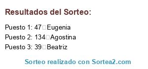 Este sorteo ha sido certificado por Sortea2. Sortea2 garantiza que: