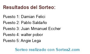- Ganador (en caso de que cumpla los 4 pasos de las bases y condiciones del sorteo): Damian Felici