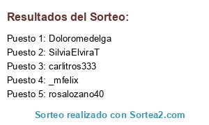 Lista de participantes: Cescagongora, jalsinca, rosalozano40, jd_sabadell, _mfelix, Vero_divi, JuanluisAranda ., Doloromedelga, carlitros333, SilviaElviraT, Noe_Urdangaray.
