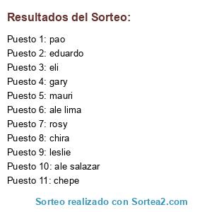 Lista de participantes: ale lima, ale salazar, eduardo, eli, chira, gary, chepe, leslie, mauri, pao, rosy.