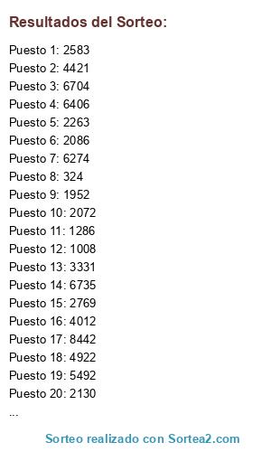 Este sorteo ha sido certificado por Sortea2. Sortea2 garantiza que: