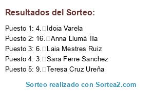 Lista de participantes: 1. Gisela Boix Morros, 2. David Escobar Cruz, 3. Sara Ferre Sanchez, 4. Idoia Varela, 5. Laura Montes Gutierrez, 6. Laia Mestres Ruiz, 7. Cristina Aguilera Gonzalez, 8. Anna Angrill, 9. Teresa Cruz Ureña, 10. David Valverde, 11. Zaida Porcal, 12. Elena Audi Llopart, 13. Núria Audi Llopart, 14. Aroa Hortigon, 15. Catarina Oliveira, 16. Anna Llumà Illa, 17. Marina Barcel Salvador, 18. Laura Garcia, 19. Andrea Romero Fernandez, 20. Neus Dalmau, 21. Nika Antunez, 22. Andrea Tabueña Puente.