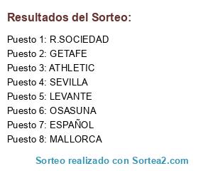 Lista de participantes: OSASUNA, GETAFE, ESPAÑOL, ATHLETIC, MALLORCA, LEVANTE, SEVILLA, R.SOCIEDAD.