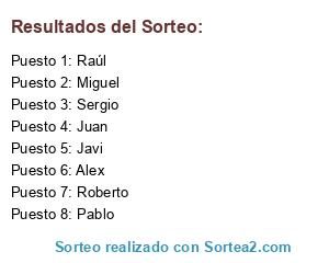 Lista de participantes: Javi, Juan, Roberto, Raúl, Pablo, Miguel, Alex, Sergio.
