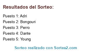 Lista de participantes: Pirichi, Manwell, Ivanov, Perro, Fran, Young, Carlos, Adri, Bongouri, Kote, Cantona, Strava, Dante, Sine, Tonio.