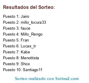 Lista de participantes: Shox, millo_locura33, Menottista, Santiago11, fauce, Millo_Rengo, Jairo, Lucas_tr, Fran, Kabe.