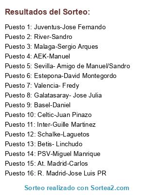 Lista de participantes: Carlos Pepontetjoe, Daniel Vera, Miguel Manrique, Guille Martinez, Jose Fernando Rubio, Jose Luis PR, Jose M. Julia, Manuel redinho, Juan Pinazo, David Montegordo, David Lagueto, Linchudo Laudrup, Sergio Arques, Sandro Muñoz, Fredy Bakero, Amigo de Manuel/Sandro.