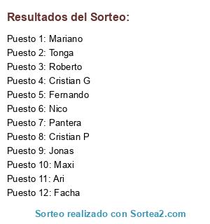Resultados del sorteo: