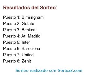 Lista de participantes: United, Inter, Birmingham, Zenit, At. Madrid, Benfica, Barcelona, Getafe.