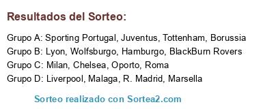 Lista de participantes: Lyon, Chelsea, Roma, Wolfsburgo, R. Madrid, Marsella, BlackBurn Rovers, Malaga, Borussia, Liverpool, Tottenham, Juventus, Milan, Sporting Portugal, Hamburgo, Oporto.