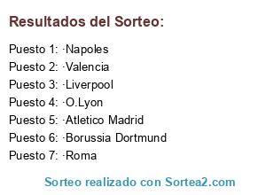 Lista de participantes: ·Atletico Madrid, ·Valencia, ·Napoles, ·Roma, ·Liverpool, ·O.Lyon, ·Borussia Dortmund.