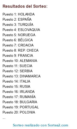 Lista de participantes: ESPAÑA, HOLANDA, ALEMANIA, INGLATERRA, ITALIA, FRANCIA, PORTUGAL, SUECIA, SERBIA, GRECIA, RUMANÍA, TURQUÍA, DINAMARCA, NORUEGA, IRLANDA, BÉLGICA, SUIZA, REP. CHECA, ESLOVAQUIA, POLONIA, RUSIA, CROACIA, BULGARIA.