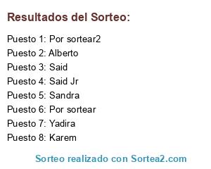 Lista de participantes: Yadira, Sandra, Karem, Said, Alberto, Said Jr, Por sortear, Por sortear2.