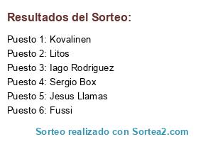 Lista de participantes: Iago Rodriguez, Jesus Llamas, Litos, Sergio Box, Fussi, Kovalinen.