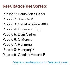 Lista de participantes: JuanCa04, Henrymj16, Ranmora, Cabalcetajosel2000, Pablo Arias Sandí, Cristian Moreno F, Djan Andrey, C.Morera, Donovan Klopp.