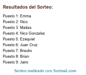 Resultados del sorteo: