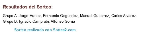 Lista de participantes: Carlos Alvarez, Ignacio Camprubi, Fernando Gegundez, Alfonso Goma, Manuel Gutierrez, Jorge Hunter.