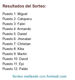 Lista de participantes: Epi, Christian, Pablo, Daniel, Kike, Catupecu, Armando, Martin, Jhonatan, Miguel, David, Fabri.