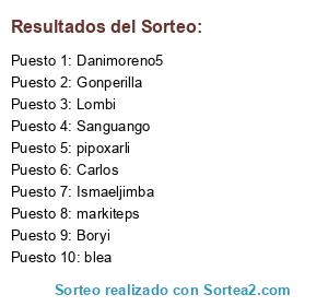 Lista de participantes: Lombi, Gonperilla, Carlos, Ismaeljimba, Sanguango, blea, pipoxarli, Boryi, Danimoreno5, markiteps.