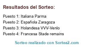 Lista de participantes: Italiana Parma, Francesa Stade remains, Española Zaragoza, Holandesa VVV-Venlo.
