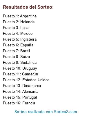 Resultados del sorteo: