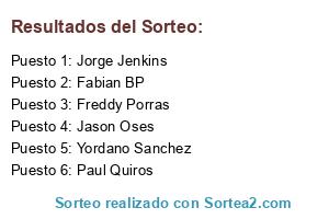 Lista de participantes: Jason Oses, Fabian BP, Paul Quiros, Yordano Sanchez, Freddy Porras, Jorge Jenkins.