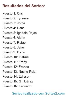Lista de participantes: Daza, Aldrin, Cris, Edisson, Franco, Fredy, G. Juárez, Gabriel, Hans, Ignacio Rojas, Jako, Jorge, Nacho Ruiz, Facundo, Rafael, Tyreese.