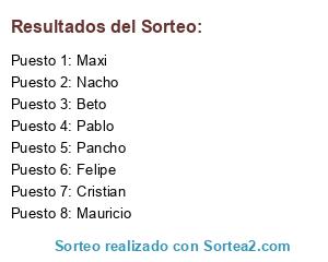 Lista de participantes: Mauricio, Cristian, Maxi, Nacho, Pancho, Beto, Felipe, Pablo.
