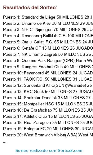 - Puesto 1: Standard de Liège 50 MILLONES 28 JUGADORES