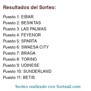 Lista de participantes: HOLFESTEIN, SWAESA CITY, CRYSTAL PALACE, WATFORD, MALAGA, LAS PALMAS, ESPANOL, BESIKTAS, FENERBACCE, HARTHA BERLIN, GALASTASARAY, NIZA, TORINO, KLASNODAR, SASUOLO, SPARTA, LOKOMOTIV, BRAGA, SAMDORIA, FRÁNCFURT, EIBAR, SAINT ETIENE, BETIS, CSKA MOSCU, PSV, FEYENOR, AJAX, LA CORUÑA, CHIEVO VERONA, SUNDERLAND, UDINESE, WERDER BREMEN, COLONIA, HAMBURGO.