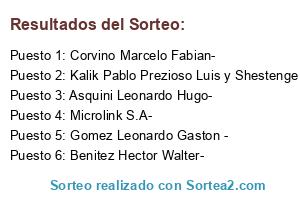 Lista de participantes: Microlink S.A-, Kalik Pablo Prezioso Luis y Shestenge Diego SH-, Asquini Leonardo Hugo-, Corvino Marcelo Fabian-, Gomez Leonardo Gaston -, Benitez Hector Walter-.