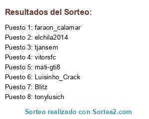 Lista de participantes: vitorsfc, mati-gti8, faraon_calamar, tonylusich, tjansem, Blitz, Luisinho_Crack, elchila2014.