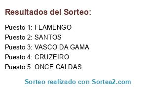 Lista de participantes: SANTOS, VASCO DA GAMA, CRUZEIRO, ONCE CALDAS, FLAMENGO.