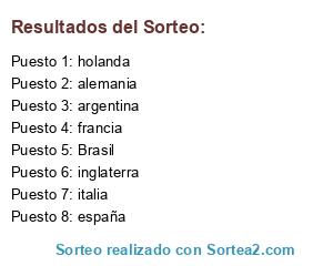 Lista de participantes: Brasil, argentina, alemania, españa, francia, holanda, inglaterra, italia.