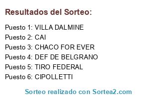 Lista de participantes: DEF DE BELGRANO, CHACO FOR EVER, TIRO FEDERAL, CIPOLLETTI, VILLA DALMINE, CAI.