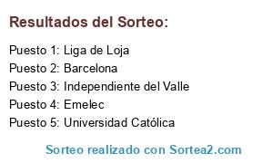 Lista de participantes: Barcelona, Emelec, Independiente del Valle, Universidad Católica, Liga de Loja, .
