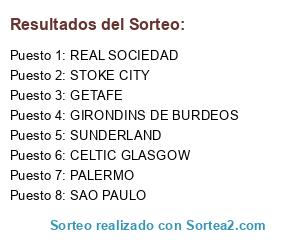 Lista de participantes: GIRONDINS DE BURDEOS, REAL SOCIEDAD, PALERMO, SAO PAULO, SUNDERLAND, STOKE CITY, GETAFE, CELTIC GLASGOW.