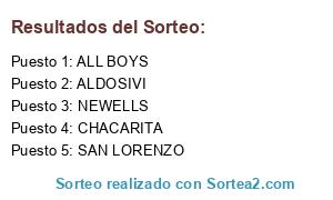 Lista de participantes: CHACARITA, NEWELLS, ALL BOYS, SAN LORENZO, ALDOSIVI.