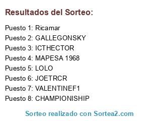 Lista de participantes: Ricamar, LOLO, MAPESA 1968, VALENTINEF1, ICTHECTOR, GALLEGONSKY, CHAMPIONISHIP, JOETRCR.