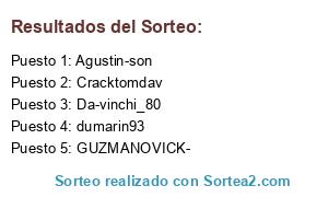 Lista de participantes: GUZMANOVICK-, Cracktomdav, dumarin93, Agustin-son, Da-vinchi_80.