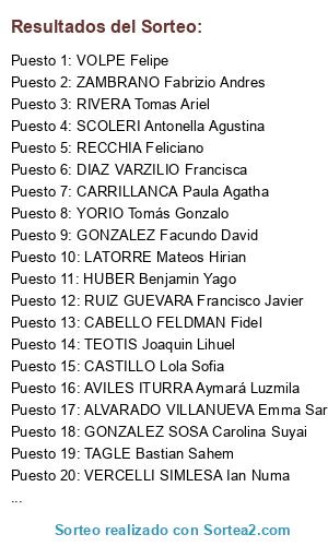 INGRESAN a Turno Mañana los primeros 43 sorteados, el resto queda en Turno Tarde y se respetará el orden de mención como lista de espera