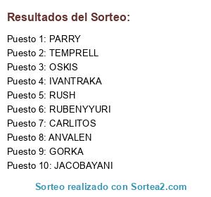 Lista de participantes: OSKIS, RUBENYYURI, RUSH, IVANTRAKA, PARRY, CARLITOS, TEMPRELL, JACOBAYANI, ANVALEN, GORKA.