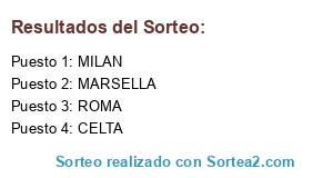 Lista de participantes: CELTA, MILAN, ROMA, MARSELLA.